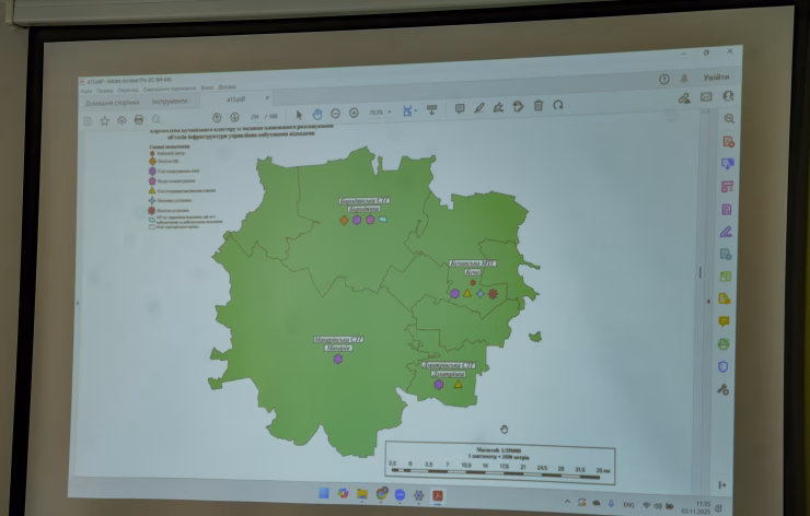У межах зустрічі презентували карту-схему Бучанського кластеру з планованими об’єктами інфраструктури управління побутовими відходами.