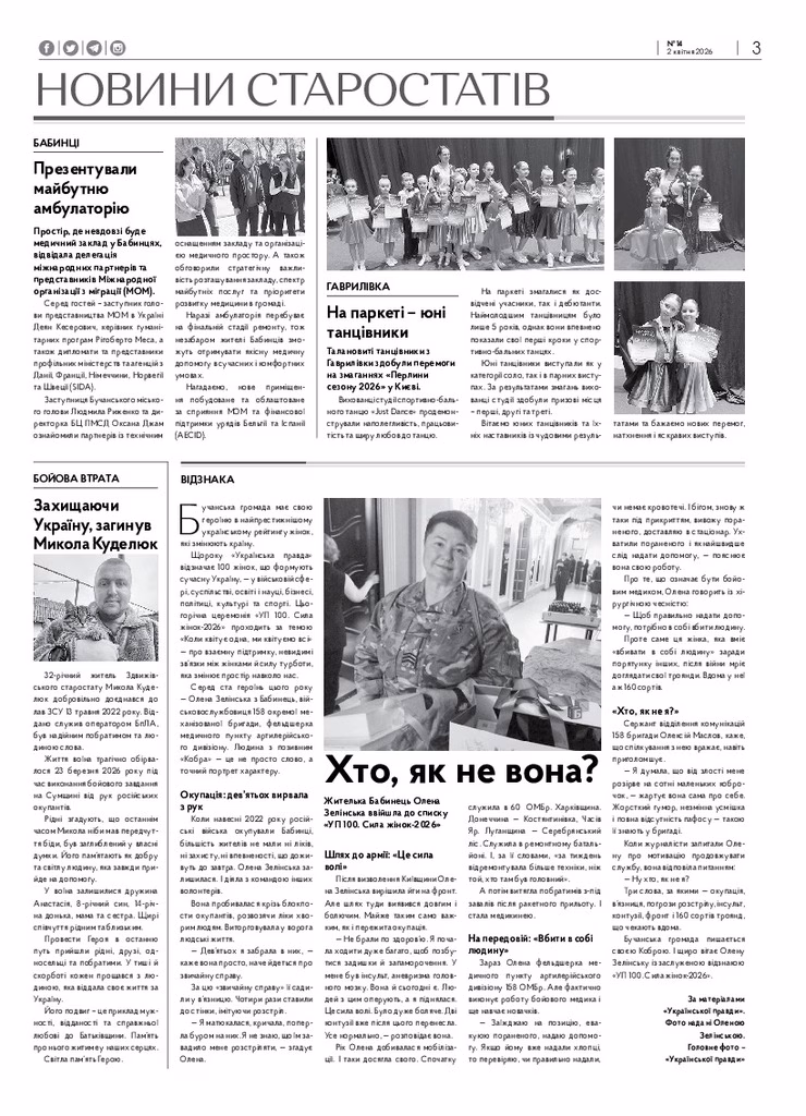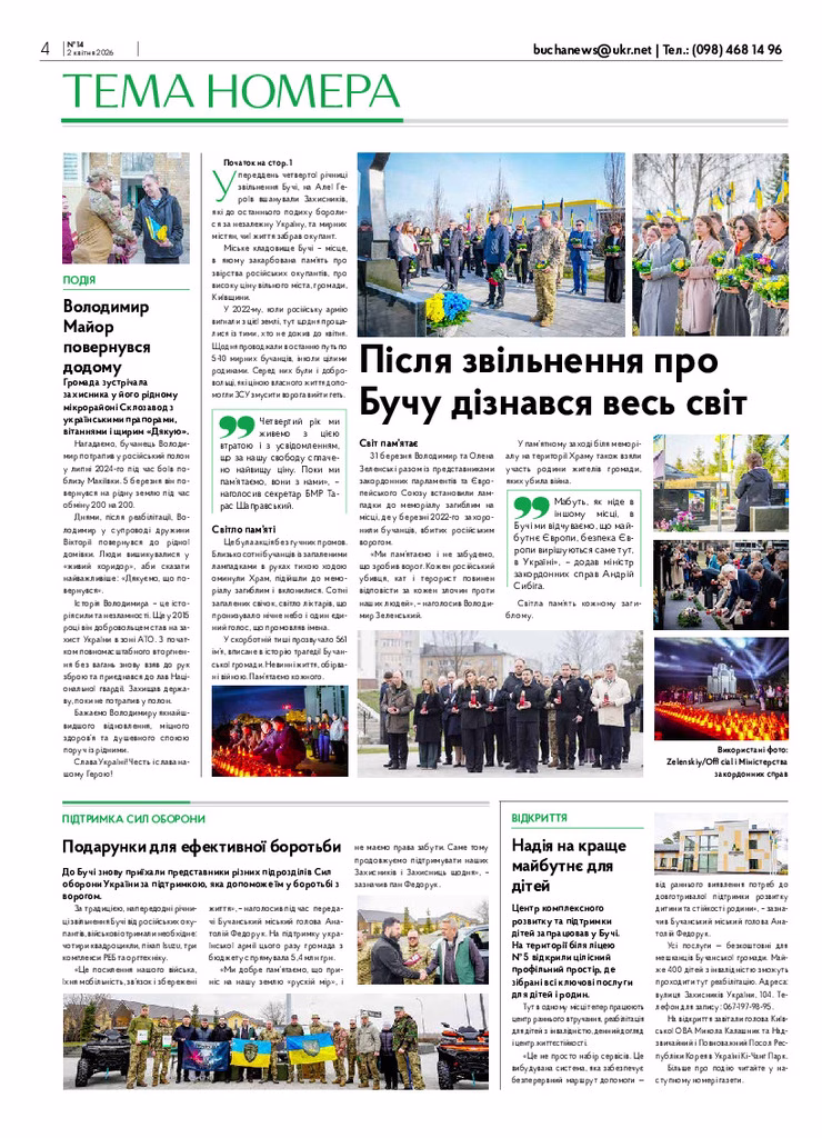 Четверта річниця із дня звільнення громади з окупації – головна тема газети від 2 квітня 2026 року.